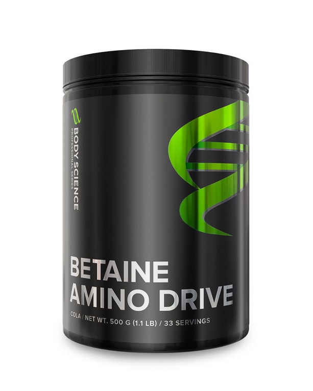 Body Science Betaine Amino Drive er et letdrikkeligt aminosyreprodukt, som ud over de livsnødvendige aminosyrer også indeholder betain, L-citrullin og L-tyrosin. Produktet har et aminosyreindhold på over 92 %, hvilket er et af de højeste indhold blandt de produkter, der er på markedet – og den populære aminosyre L-leucin udgør hovedparten. Det, som kendetegner Body Science Betaine Amino Drive i forhold til de øvrige aminosyreprodukter på markedet, er imidlertid ikke det høje aminosyreindhold – det er aminosyren betain, også kaldet trimetylglycin, som hver portion indeholder mere end 2 gram af.