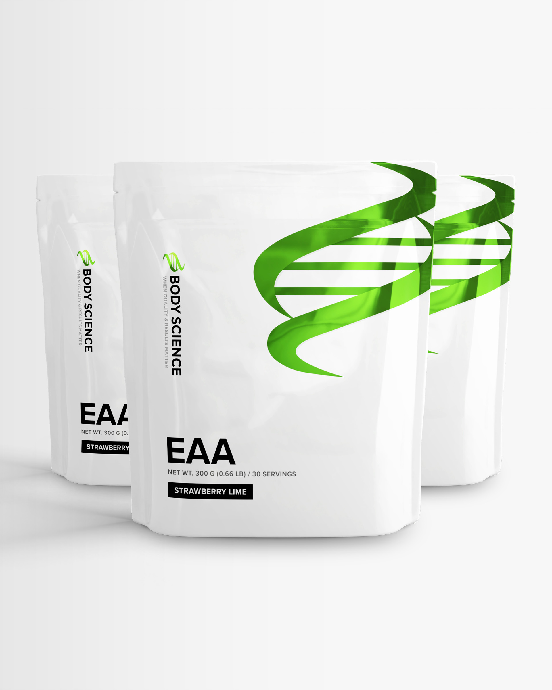 Body Science EAA er et velsmagende EAA pulver udviklet til dig, der ønsker at stimulere proteinsyntesen i direkte forbindelse med træning. Hver portion indeholder alle 9 essentielle aminosyrer i samme forhold som i valleprotein, som kroppen ikke selv kan producere, men som er nødvendige for at opbygge og bevare muskelmasse.