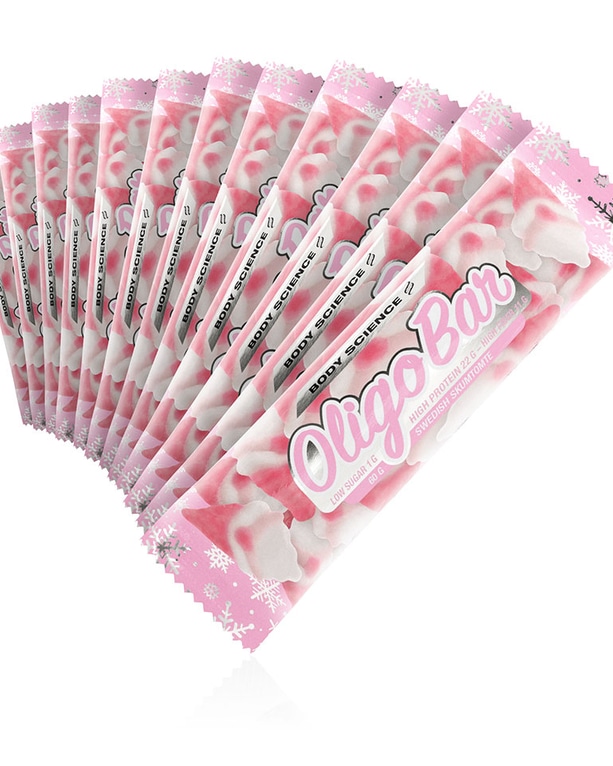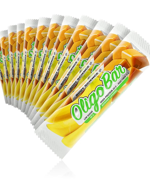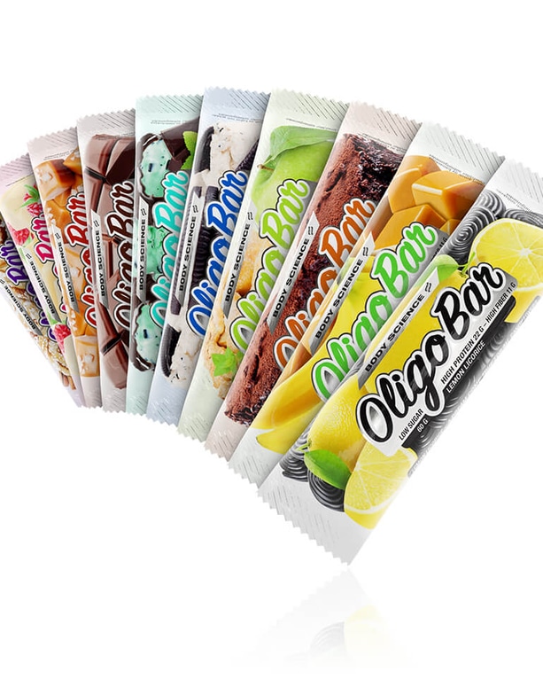Body Science Oligo Bar er den seneste tilføjelse til Body Sciences populære serie af proteinbarer. Det, der adskiller Body Science Oligo Bar ekstra meget fra tidligere proteinbarer, er den meget bløde og saftige konsistens. Den unikke struktur skyldes, at proteinbaren i stor udstrækning består af plantefiberen isomalto-oligosaccharid (IMO). IMO består overvejende af præbiotiske fibre og har en naturlig sødme, der svarer til ca. 60 % af sukkers sødme. Fiberens bløde struktur og naturlige sødme gør den perfekt som ingrediens, og til forskel fra kommercielle kulhydratkilder bidrager den ikke med et skyhøjt sukkerindhold, men derimod med fibre.