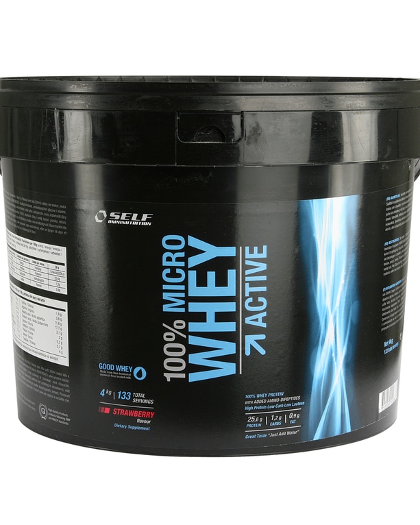 Self Micro Whey Active er et proteinpulver af høj kvalitet, som fås i flere fantastiske smagsvarianter. Hver portion indeholder 26 gram muskelopbyggende protein, men kun 1,1 gram sukkerarter og 0,9 gram fedt.