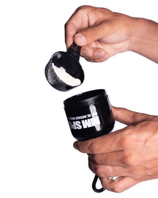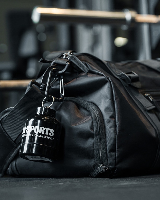 Pulverbeholderen rummer 60 g. Den kan åbnes både i bunden og toppen for nem påfyldning og problemfri hældning i shakeren uden spild.