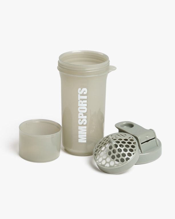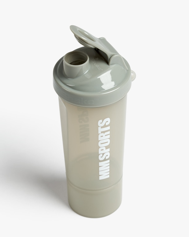Takket være den smarte ekstra beholder, som skrues på shakeren, kan du have både PWO og proteinpulver eller andre kosttilskud med dig uden at skulle medbringe poser med pulver eller ekstra opbevaringsdåser til kapsler og tabletter. Du skal bare fylde den ekstra beholder med det, du skal have med dig, skrue beholderen fast på shakeren og tage til træning.