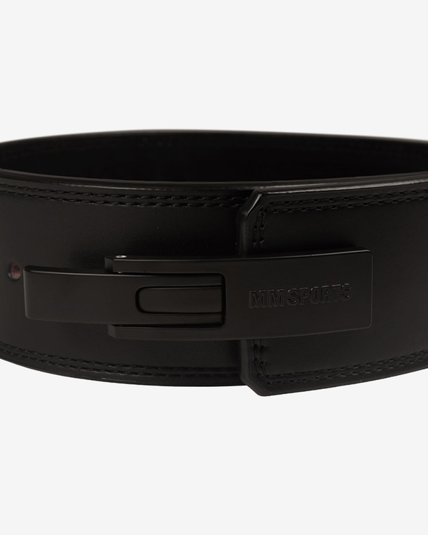 MM Sports Lever Belt er et løftebælte med en utroligt hurtig og nem låsefunktion. Når du er klar til at løfte, spænder du ganske enkelt bæltet ved at folde den smarte lukkefunktion ned. Efter løftet eller sættet løsnes bæltet hurtigt ved at trække låsefunktionen opad, så den havner i hvileposition. Og takket være denne geniale løsning kan du nemt og hurtigt løsne bæltet mellem sættene uden at tage det af.
