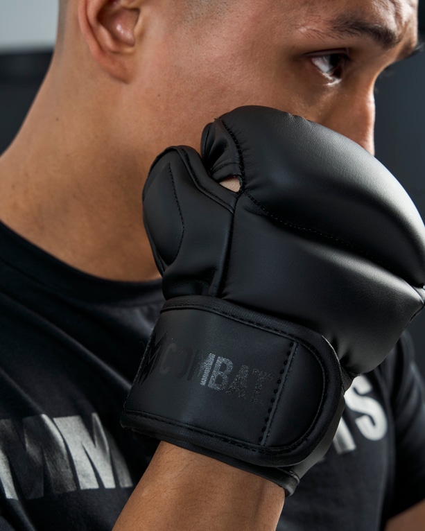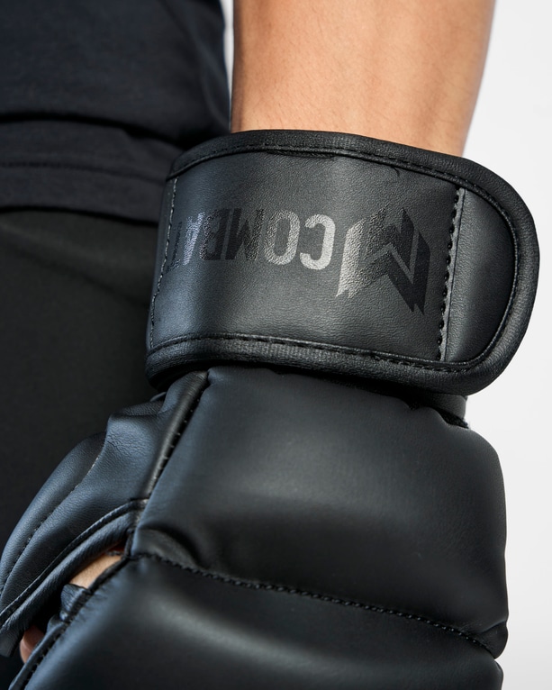 MM Combat MMA Gloves i helsort Black/Black-design – stilrene, fleksible og slidstærke handsker til al MMA- og kampsporttræning. Handskerne er fremstillet i højkvalitets kunstlæder, som kombinerer holdbarhed med nem vedligeholdelse og lang levetid.