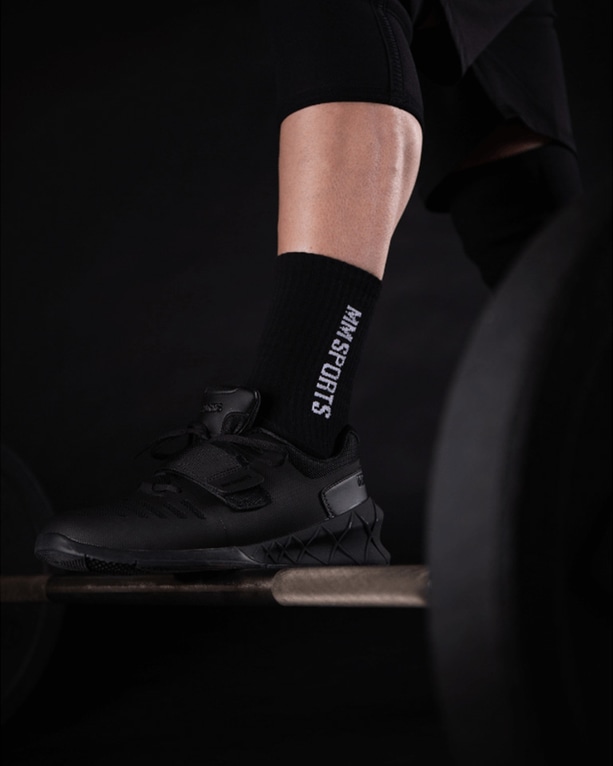 MM Sports løftesko har en flad og stabil sål med den helt rigtige følelse. Med den ophøjede hæl bliver det nemmere for dig at finde en god vinkel i knæ- og hofteled. Skoen er udstyret med både snørebånd og en ekstra bred velcrolukning, der sammen giver god støtte og stabilitet.