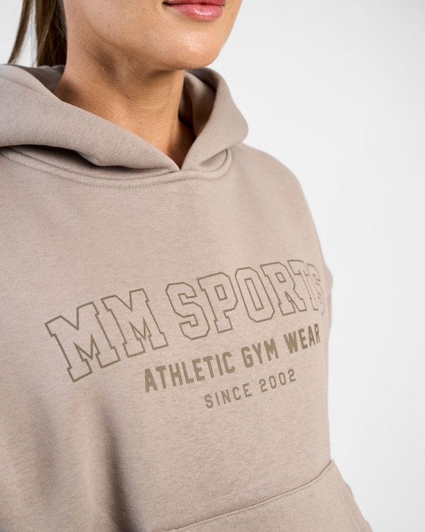 En hoodie med oversized pasform og sporty følelse, designet til kvinder. Fremstillet i en blød bomuldsblanding, der føles behagelig og holder formen. På brystet er der et klassisk MM Sports Varsity-print, som giver et tidløst og atletisk look. Ribkanter ved ærmer og nederste kant sørger for, at trøjen sidder godt og holder på varmen.