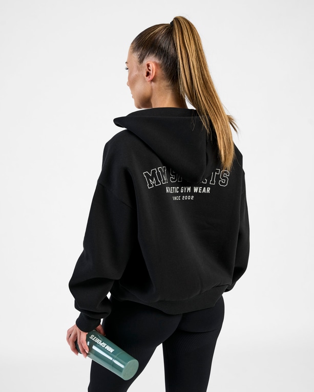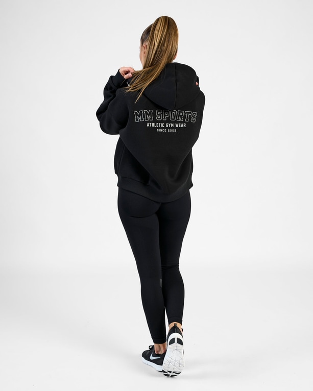 En zip-hoodie med oversized pasform og sporty look, designet til kvinder. Fremstillet i en blød bomuldsblanding, der føles behagelig og holder formen. På brystet er et klassisk MM Sports Varsity-print, som giver et tidløst og atletisk udtryk. Lynlåsen gør den nem at tage af og på – perfekt til lag-på-lag. Ribkanter ved ærmer og nederste kant holder trøjen på plads og beskytter mod kulden.