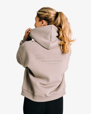 En zip-hoodie med oversized pasform og sporty look, designet til kvinder. Fremstillet i en blød bomuldsblanding, der føles behagelig og holder formen. På brystet er et klassisk MM Sports Varsity-print, som giver et tidløst og atletisk udtryk. Lynlåsen gør den nem at tage af og på – perfekt til lag-på-lag. Ribkanter ved ærmer og nederste kant holder trøjen på plads og beskytter mod kulden.