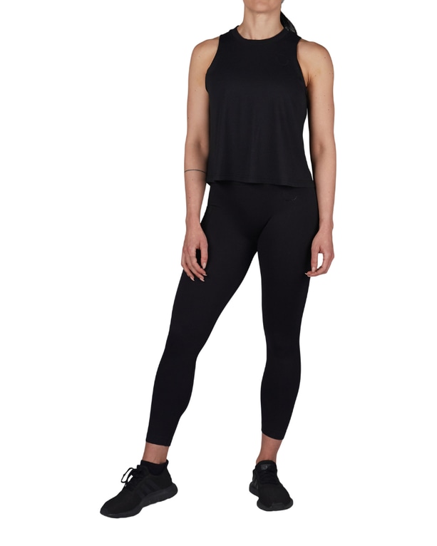 Træningstop med et flot fald fremstillet i blødt stof med rå kanter. Høj halsudskæring og løsere pasform forneden, hvilket giver god bevægelsesfrihed. En svedafvisende tanktop, som er åndbar, transporterer fugt væk og er velegnet til alle typer træning.