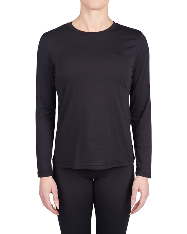 En langærmet T-shirt i dejligt blødt strækstof, der holder dig kølig under hele træningspasset. Den er blød og let, og sidder derfor meget behageligt. Den har et mindre diskret tryk foran på brystet. Gå en størrelse op, hvis du vil have, at den skal sidde mere løst.