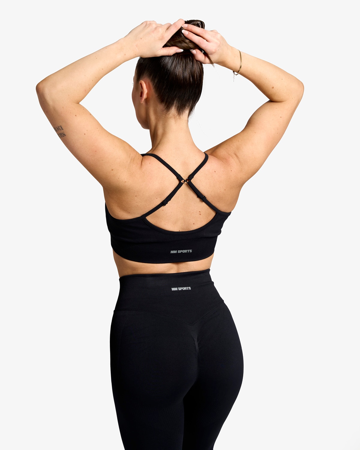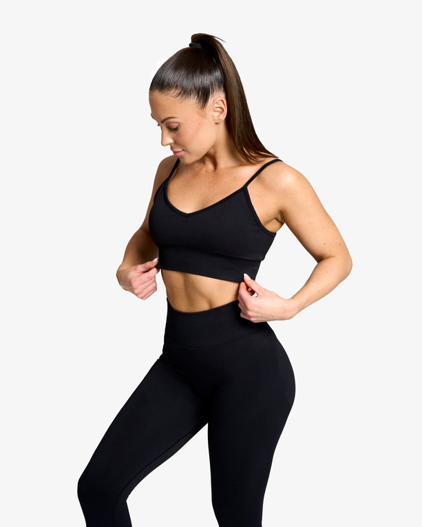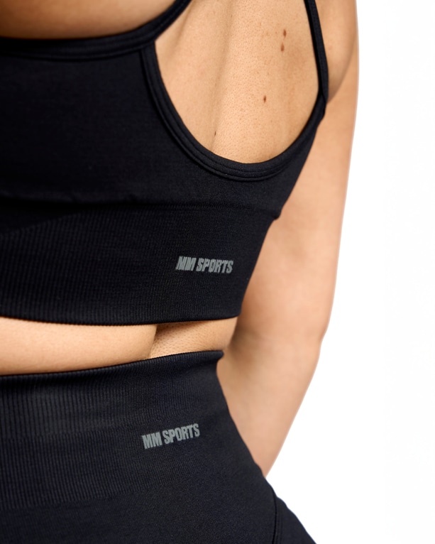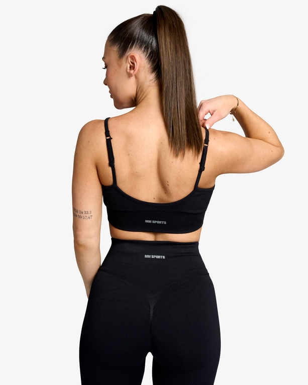 Denne sports-bh forener stil, funktion og fleksibilitet. Du kan nemt justere stropperne bagpå – brug dem klassisk lige eller krydset for en mere støttende og sporty følelse. Det sømløse, åndbare og hurtigtørrende materiale gør den perfekt til både træning og afslapning.