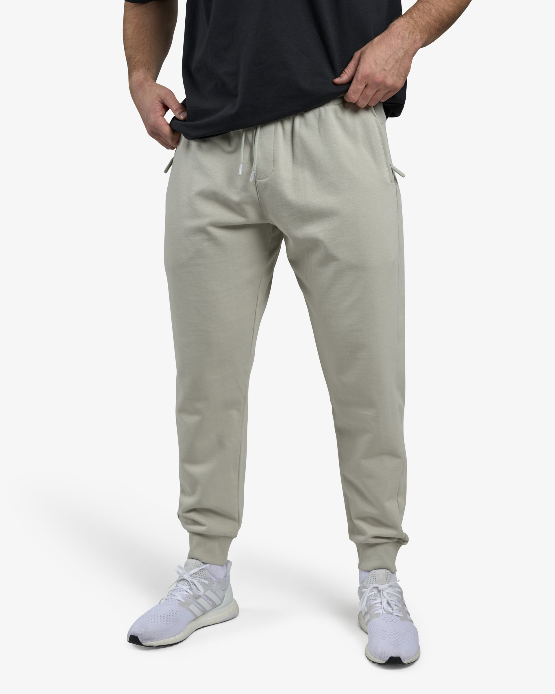 Bukserne har lynlåslommer i siderne og en baglomme med lynlås – så du kan opbevare dine ting sikkert under træning. Den tapered pasform og ribkant nederst giver et sporty look og en sikker pasform under hele passet.