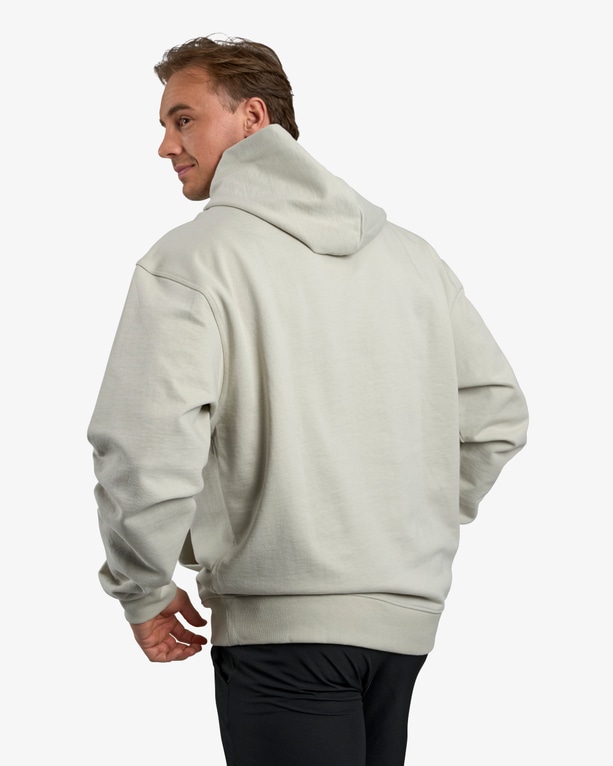 En hoodie i kraftigt materiale med afslappet pasform – perfekt til dig, der ønsker noget solidt uden at det føles tungt. Den uopkradsede inderside giver en naturlig fornemmelse mod huden og gør den ekstra behagelig at have på – både under opvarmning og mellem sæt.