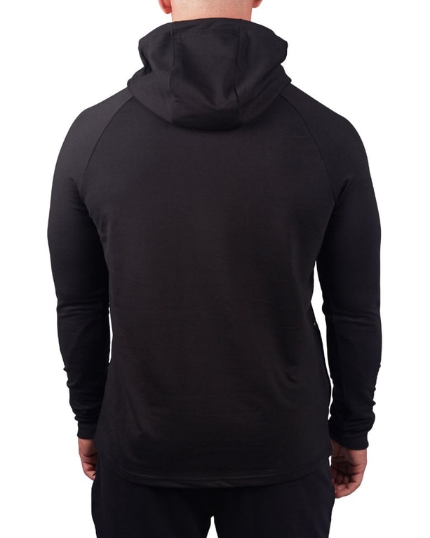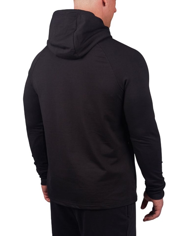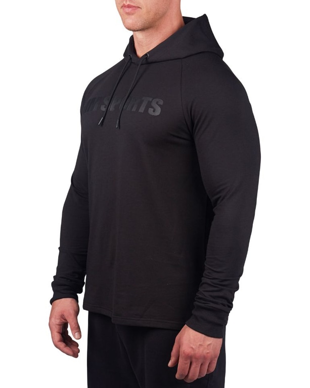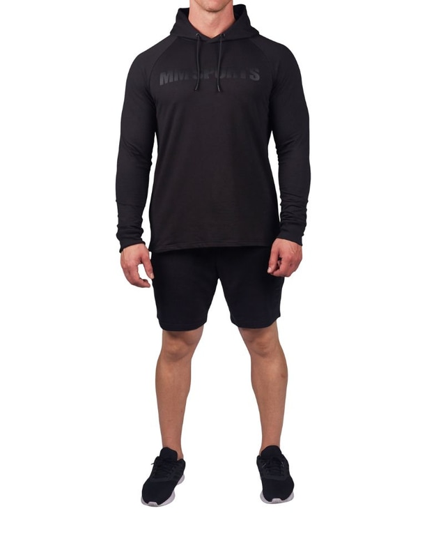 Hoodie med atletisk pasform og raglanærmer, som fremhæver en veltrænet krop. Den er fremstillet i en tynd bomuldsblanding, der gør den behagelig at have på både under træning i fitnesscentret og til hverdag. Foret hætte med snøre. Lomme på den ene side med skjult lynlås. MM Sports-tryk foran på brystet.