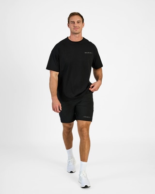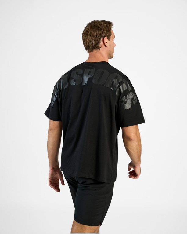Cool t-shirt med overdimensioneret pasform og faldne skuldre, der styrker overkroppen. Vores klassiske hardcore pres bagpå over skuldrene. Behagelig at have på under opvarmningen med en sweater nedenunder eller som den er under hele træningen. Med løs pasform og god kvalitet vil dette være din yndlings-t-shirt og hjælpe dig gennem hver træning.