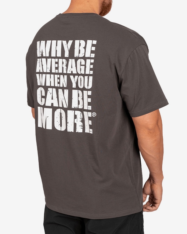 Cool t-shirt med overdimensioneret pasform og faldne skuldre, der styrker overkroppen. Nu i nyt design med flot tryk på ryggen - Why Be Average when you can be more.