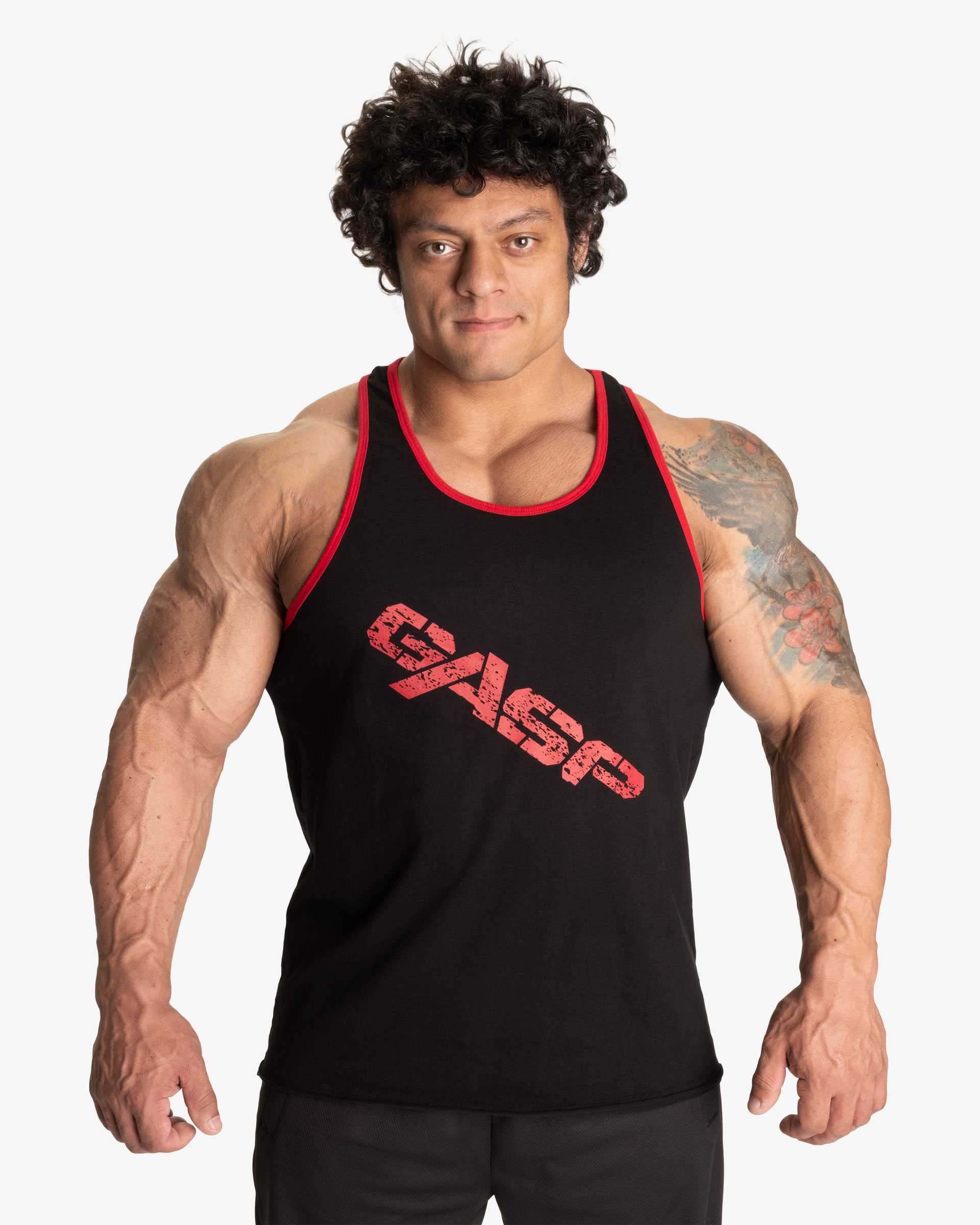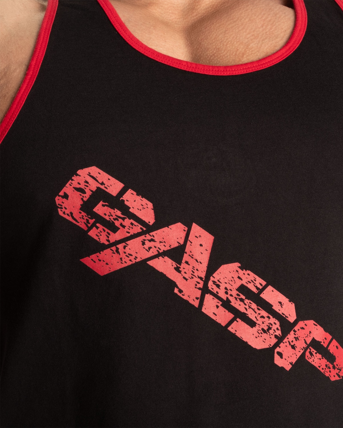 Big print for massive people! Nice and soft 100% cotton jersey fabric. GASP symbol application in the back, just below the "traps" area. T-back and loose fit. Quality: 100% cotton